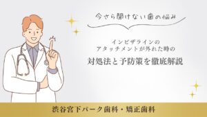アタッチメントが外れることは珍しいことではありませんが、外れた位置や数によって必要な対応は異なります。まずは落ち着いて担当医へ連絡し、必要があれば再設置を行います。外れにくくするためには、正しい着脱方法や丁寧な口腔ケア、硬い食べ物への注意が大切です。