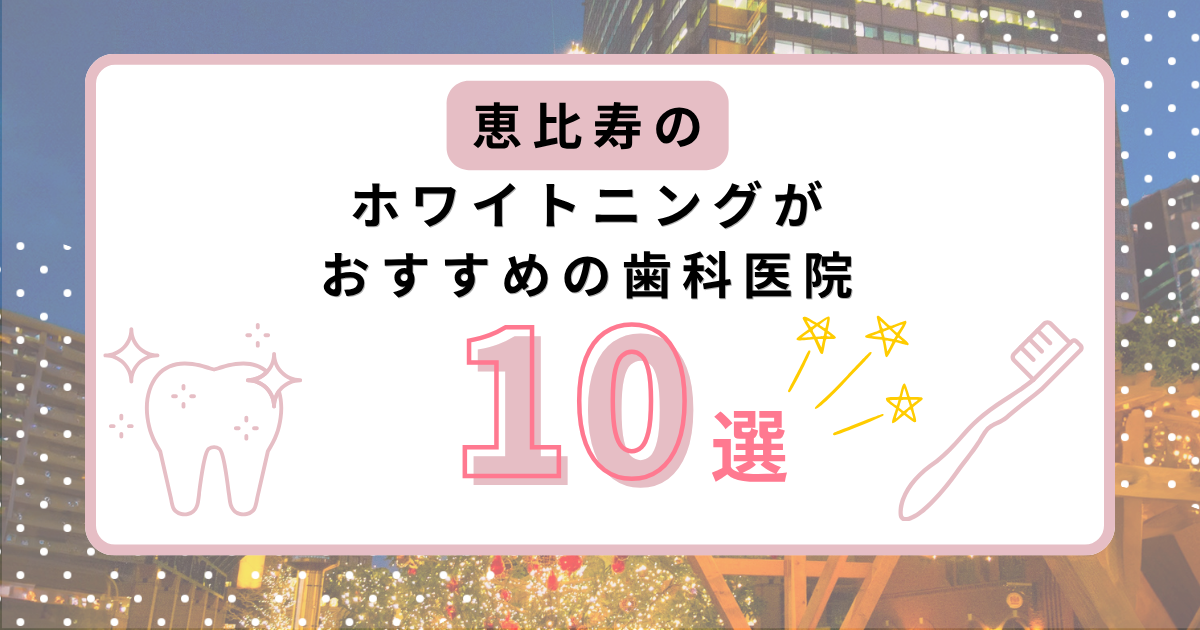 恵比寿には多くの歯科医院が集まっているため、「どこが本当に安くて効果があるの?」と迷ってしまいますよね。恵比寿エリアで口コミの評価が高く、無理なく通えてしっかりと効果を実感できるおすすめのホワイトニング歯科医院10選をご紹介します。
