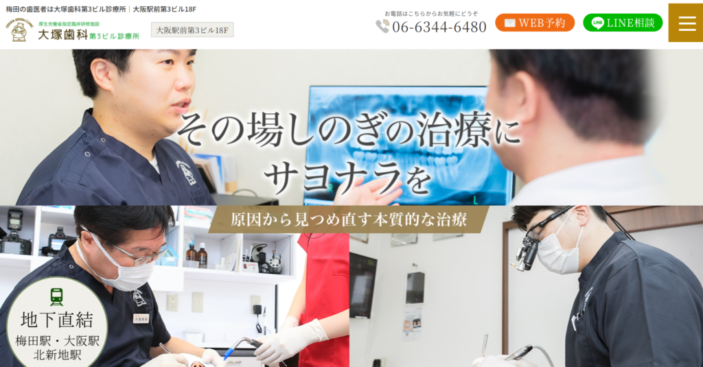 北新地駅からすぐ、大阪駅や梅田駅からも地下街で直結という抜群の好立地にある歯科医院です。ビジネス街の中心にあるため、昼休みや仕事終わりなどの空き時間を有効活用して通うことができます。