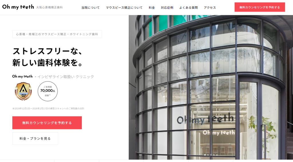 心斎橋駅から徒歩圏内というアクセスの良さが魅力で、矯正治療と合わせてホワイトニングにも力を入れているクリニックです。歯の色だけでなく、歯並びも含めたトータルでの美しさを追求できる環境が整っています。