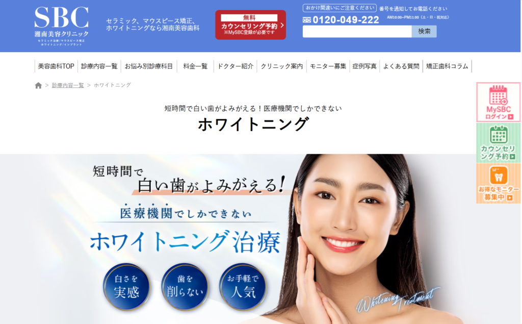美容医療で有名な湘南美容クリニックですが、大阪エリア(梅田や心斎橋など)の歯科併設院では高品質なホワイトニングを提供しています。大手ならではのスケールメリットを活かした、リーズナブルな価格設定が大きな特徴です。