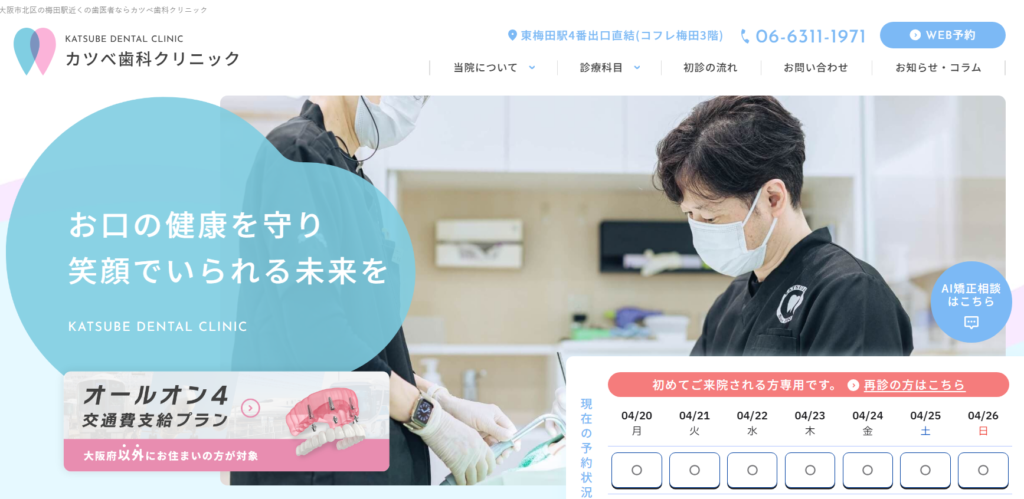 カツベ歯科クリニックは、最新の設備を整え、質の高いホワイトニングと総合的な歯科診療を提供するクリニックです。東梅田駅に直結しているため、アクセスが非常に良く、天候に左右されずに快適に通院できます。