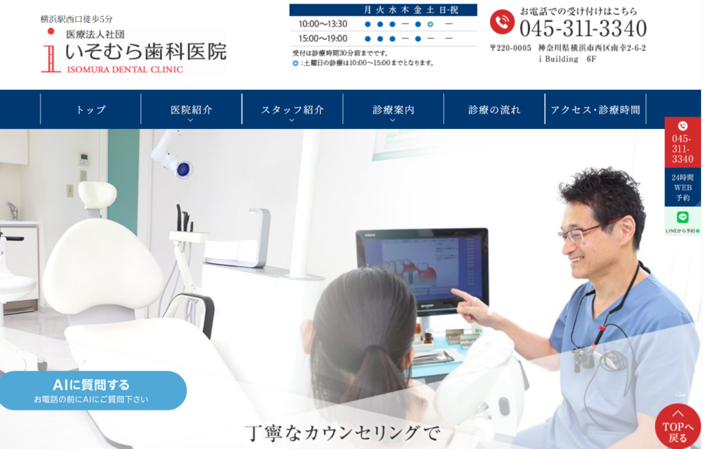 いそむら歯科医院は、横浜駅西口からほど近い場所に位置し、緊張をほぐしてくれるアットホームな雰囲気が魅力のクリニックです。