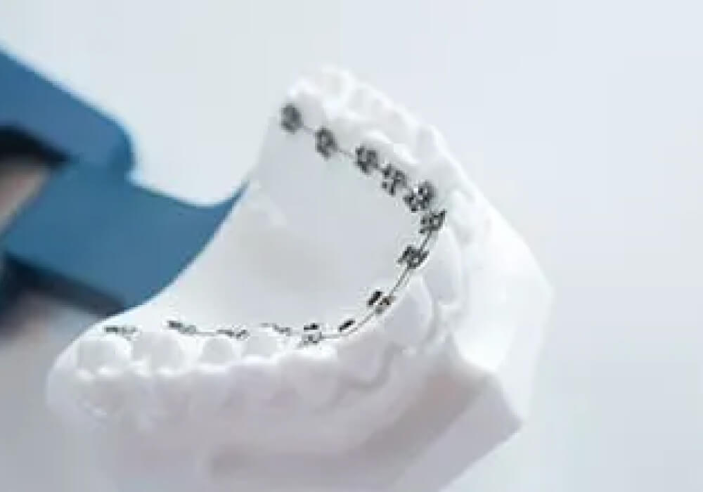 歯の表側ではなく裏側にブラケットを装着し、ワイヤーを通して歯を動かす方法です。装置が表側から見えにくいため、周りの人に気づかれにくく、人前に出る仕事をされている方に特に適しています。ただし、高度な治療技術が求められるため、費用は表側矯正よりも少し高くなります。